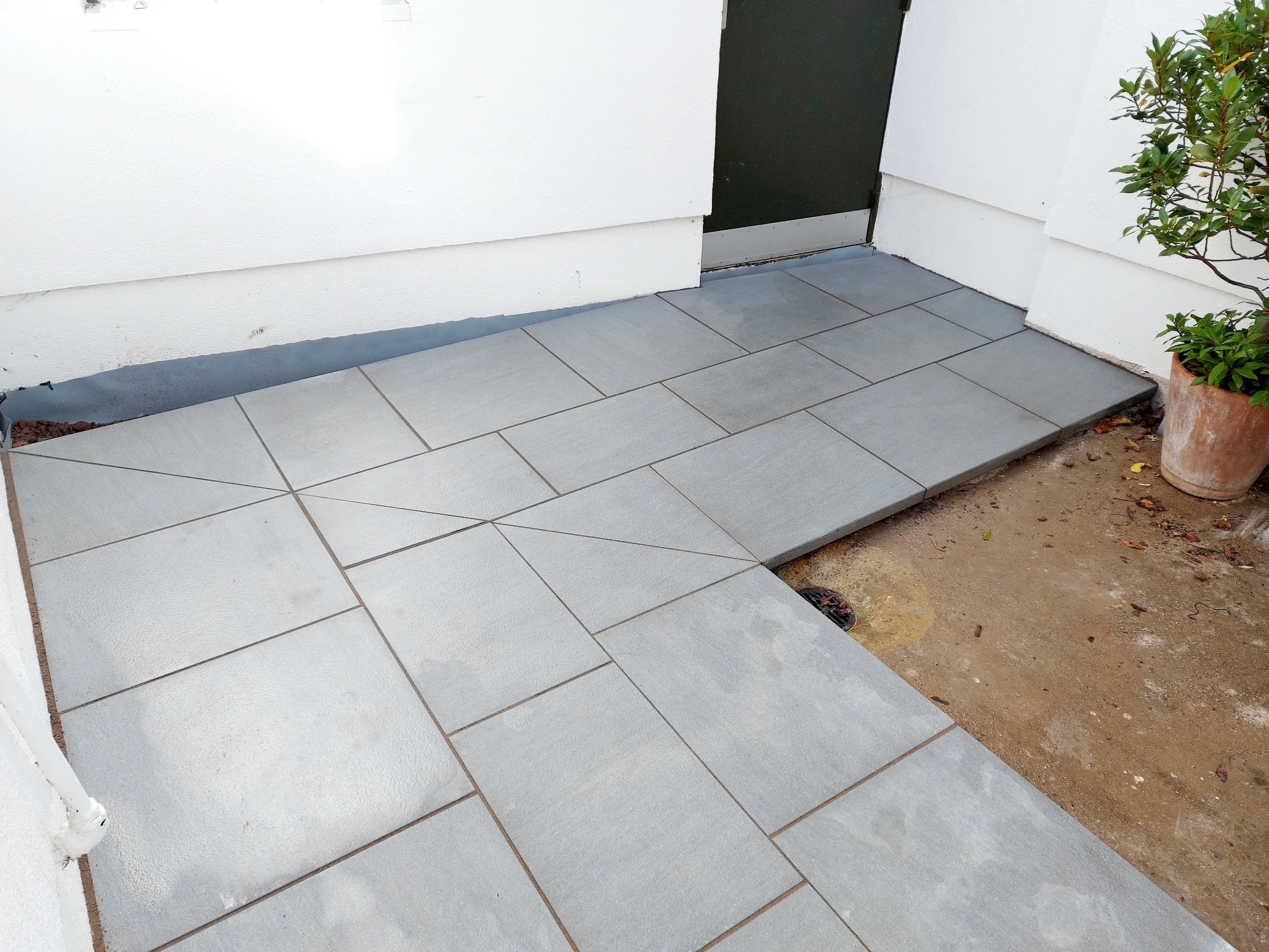Whether you prefer the sleek, low-maintenance finish of porcelain slabs or the organic warmth of sandstone, limestone, and granite, every project is built on solid foundations with accurate levels, drainage, and premium materials.